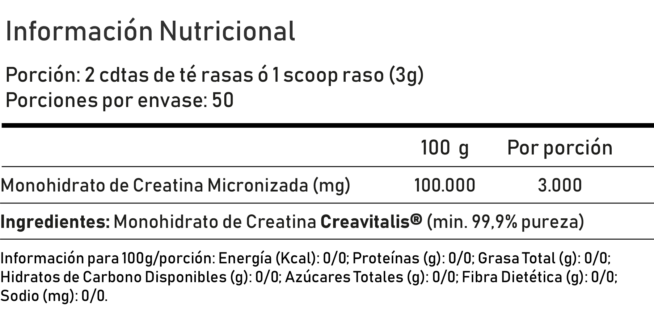 Crealife está formulado con Creavitalis®, que —a diferencia de Creapure®— ha sido optimizada específicamente para el sector salud y para la fortificación de alimentos y suplementos.
